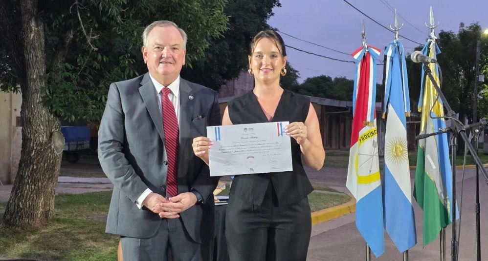 Posteriormente, se desarrolló la ceremonia de asunción de las autoridades comunales electas. En tal sentido la Lic. Dianela Michlig recibió de manos del senador el correspondiente diploma oficial del tribunal electoral que acredita su función al frente del Ejecutivo comunal.