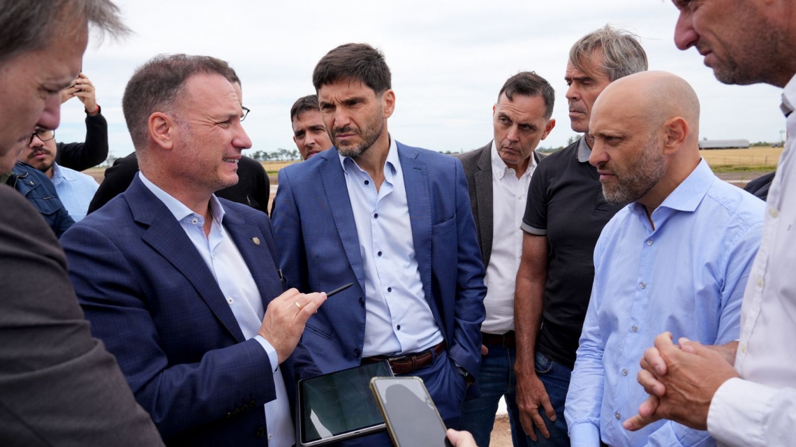 Seguidamente, Pullaro junto al ministro de Obras Públicas de Santa Fe, Lisandro Enrico, supervisó la obra de pavimentación del Desvío Giardino, corredor de tránsito pesado hacia los puertos de Timbúes, una obra estratégica para el desarrollo productivo de la provincia en la que el Gobierno de Santa Fe invierte $ 36.846 millones para realizar la nueva conexión vial que unirá la Ruta 91 con la Autopista Rosario-Santa Fe y con la localidad de Timbúes, desembocando en la calle Cacique Mangoré.